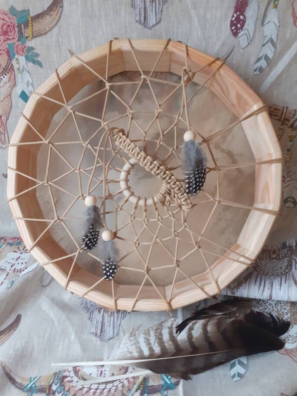 Joli tambour en peau de cerf d'un diamètre de 36 cm.
