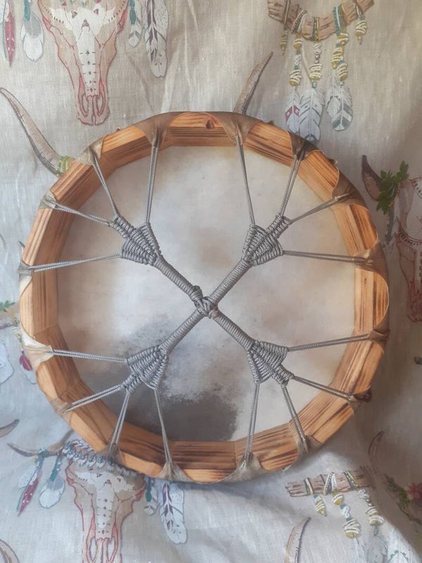 Joli tambour en peau de cerf. Original de part son motif naturel raelant l'animal